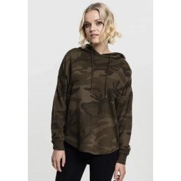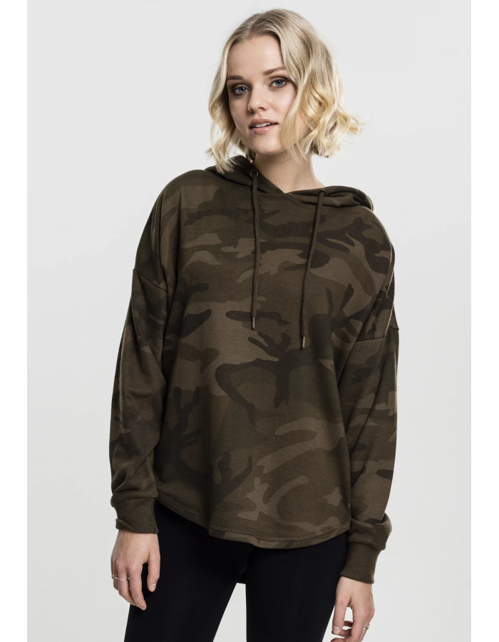 Featuring an oversized shape and subtle camouflage look, the Ladies Oversized Camo Hoody combines two of the most popular urban styles. The soft terry fabric and the front and back rounded hem ensure a loose, comfortable fit. Set-in sleeve seams and a wide ribbed hem round off the casual look and make this hoody the latest essential for your wardrobe.