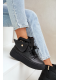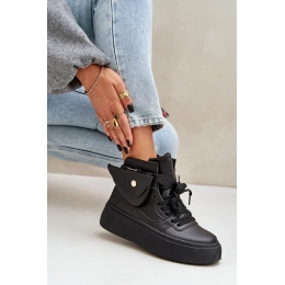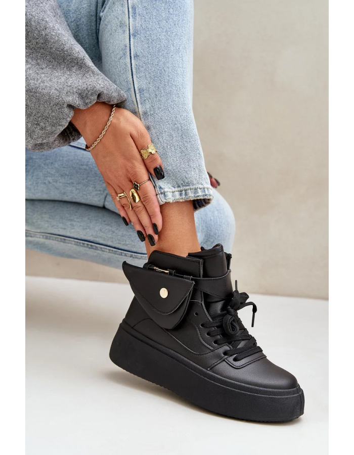 Wysokie sneakersy damskie wykonane z wysokiej jakości eko skóry to połączenie nowoczesnego stylu i wygody. Osadzone na masywnej platformie, zapewniają komfort noszenia oraz dodatkową amortyzację. Cholewka została wzbogacona o małą, odpinaną saszetkę, która nadaje oryginalnego charakteru. Model wyróżnia się zaokrąglonymi noskami oraz klasycznym sznurowaniem, które umożliwia idealne dopasowanie do stopy. Sneakersy świetnie sprawdzą się jako element miejskich stylizacji, dodając im modnego, streetwearowego wyrazu. Idealny wybór dla kobiet ceniących funkcjonalność i niebanalny design! Przy wyborze rozmiaru prosimy kierować się tabelą rozmiarów.